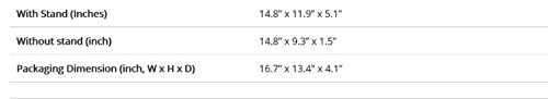 Active screen size – 16″ (15.6″ Diagonal corner to corner)