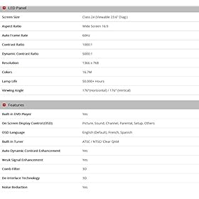 The E246BD-SMQK delivers the stunning lights, darks, and rich colors of 720P resolution all on a 24-inch LED HDTV. HDMI input delivers the unbeatable combination of high-definition video and clear audio. A USB port is useful when you need to flip through your entire stored pictures and tune into your stored music. Accommodating your DVD collection and rentals, a DVD player is installed instantly into the display. Want to eject your current DVD but do not wish to lose your spot? The Sceptre DVD player will recall the point where you paused so you’ll resume your movie instantly upon reinserting the DVD. More Inputs, More Possibilities: With HDMI, VGA, Component, and Composite inputs, we offer a convenient balance between the old and new to fit your diverse preferences.