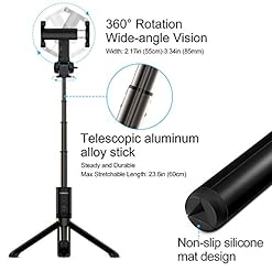 【PORTABLE & EXTENDABLE】Lightweight (148g) and portable (19cm length) phone tripod selfie stick, good choice for go back and forth and out of doors use. This stick will also be stretched to 60 cm, giving you big view throughout taking group photos.