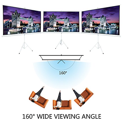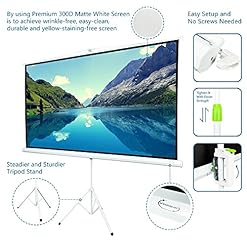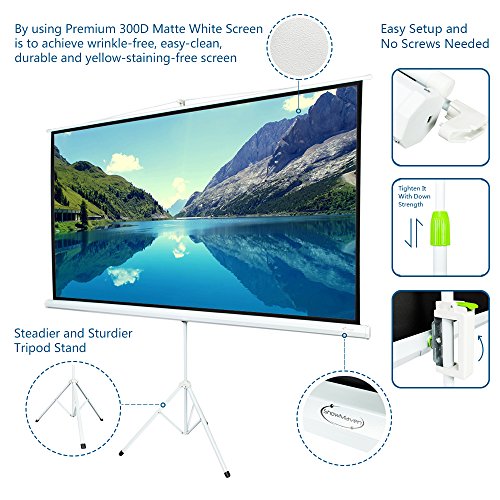 This tripod projector screen features perfect image effect, easy installation, lightweight, odorless, wrinkle-free, steady, durable. Because we are the usage of 300D matte white screen fabric and top of the range tripod stand as an alternative of 150D screen that other sellers commonly use.
