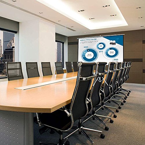 ★ PORTABLE PROJECTOR SCREEN STAND AND WIDE-RANGE APPLICATION: Tripod projector screen with stand features adjustable height function, heavy duty manual pull down tripod projector screen is perfect for shift projection task, home theater, office, and school use.