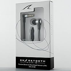 The Sharktooth Audio STA-M100 is a hands free single earphone headset with built-in microphone. Constructed of lightweight but durable aluminum, the STA-M100 features button controls to reply to calls and play/pause music when used with a cell phone or music player. The sweat-proof tangle-free flat cable ensures long-lasting performance and may not absorb moisture like fabric-reinforced cables. Small, medium, and large earcups are provided with each earbud to verify excellent fit and noise isolation. Perfect for running, cycling, driving, and other activities where you have to keep one ear open to the environment. Court reporters and transcriptionists love this headset, too!