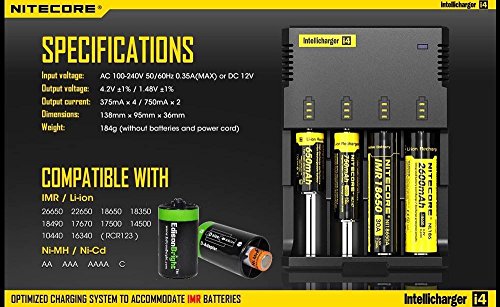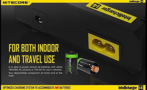 Smart battery charger, iGrace NITECORE NEW i4 (2016 New Version) Universal Smart battery Charger for Li-ion/IMR/LiFeP04/Ni-MH/Ni-Cd with 12V Car Adapter and iGrace Battery Box