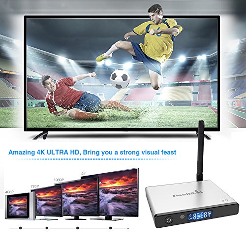 Professional Operation Performance: Our 4K television box equipped with Quad core Cortex A53 64bit which has a speed up to 2.0GHz, and with GPU Penta-core Mali-450MP GPU @ 750MHz+. Amazing operating performance, offers you quick responses, smooth picture loading. X3 comes with Android 6.0, stable and powerful operation system, give you more ultimate experience.