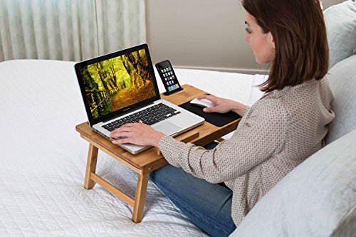 The BirdRock Home Laptop Bed Tray is a brilliant addition to any bed, sofa or chair. The tray means that you can eat or work in your laptop from the comfort of your individual bed. Once your done working store your pens or computer mouse within the convenient storage drawer. The adjustable tilt section and removable stopper means that you can prop up your favorite book to read. Weight: 5.5 pounds. 9″ tall with legs pull out.