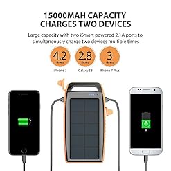 Mega 15000mAh Capacity: Charges an iPhone 7 for 4.2 times, an iPhone 7 Plus for 3 times, and the Galaxy S8 for 2.8 times
