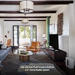 Pair with SUB and two PLAY:1s for full surround sound. Sync wirelessly with other Sonos speakers to enjoy TV, sports and music throughout your home.