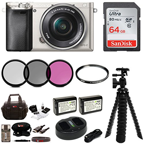 - Sony Alpha a6000 24.3MP Mirrorless Digital Camera with 16-50mm Power Zoom Lens (Silver)