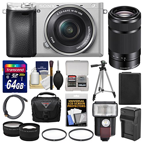[1] Sony Alpha A6300 4K Wi-Fi Digital Camera & 16-50mm Lens (Silver) + [2] Sony E 55-210mm Lens + [3] Go beyond 64GB SDXC 300x Card + [4] Spare NP-FW50 Battery +