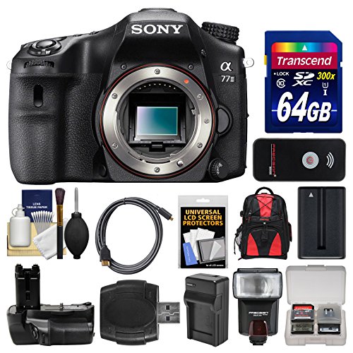 [1] Sony Alpha A77 II Wi-Fi Digital SLR Camera Body + [2] Transcend 64GB SDXC 300x Card + [3] Vivitar VG-C77AM Battery Grip +