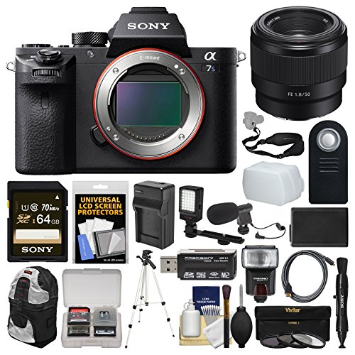 [1] Sony Alpha A7S II 4K Wi-Fi Digital Camera Body + [2] Sony Alpha FE 50mm f/1.8 Lens + [3] Sony 64GB SDXC C10 UHS-1 Card + [4] Sony Lenspen Cleaning Pen + [5] Spare NP-FW50 Battery +