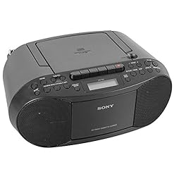 Sony CFDS70-BLK CD/MP3 Cassette Boombox Home Audio Radio, Black, With Aux Cable