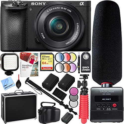 BUNDLE INCLUDES: Sony Alpha a6500 Mirrorless Digital Camera (Body) | E PZ 16-50mm F3.5-5.6 OSS Power Zoom Lens (SELP1650) | Tascam Camera-Mountable DSLR Audio Recorder w/ Shotgun Microphone (DR-10SG) | Hardshell Photographic Equipment Case with Carrying Take care of | Kodak C1300 Bridge Camera Hard Case | 64GB Extreme SDXC Memory Card | 2x NP-FW50 Replacement Camera Batteries | USB Dual Port Charger for Sony NP-FW50 battery | LED Light | Paintshop Pro X9 Digital Download | 67″ Pro Monopod and More!