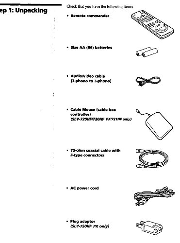 The REMOTE for the SONY VCR IS larger wider to accommodate the JOG wheel Travel, Easy Cursors for programming, menu Keep watch over, and set up. The VCR FRONT PANEL also has all of the important manual buttons. Clean front panel design with flap down cover to offer protection to the VCR tape mouth. Comes with A/V cords, Cable Eye Mouse for CABLE BOX Keep watch over. Power Cord and RF Cord.