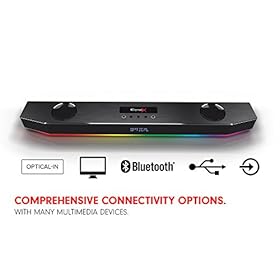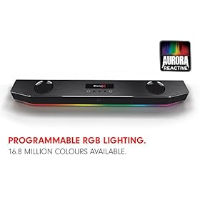 UNDER-MONITOR AUDIO SYSTEM – Perfect for your PC Gaming setup, the Katana fits right under your wide screen unobtrusively, featuring the programmable Aurora Reactive lighting system with 16.8 million colors.