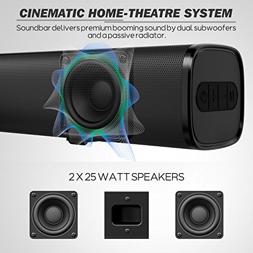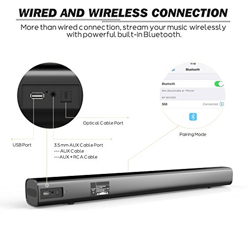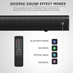 ♫ Unique Design Soundbar ♫~ Our sound bar has unique 29.5-Inch smooth appearance design, Rubber Antiskid for safety stand, LED indicator light and sensitive button. Much easier for users to operate.