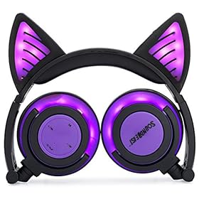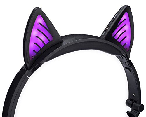 The SoundBeast Wireless Bluetooth Purple Cat Ear Headphones offer a unique visual experience with their beautiful, glowing purple lights. (Creates an amazing effect at midnight!)