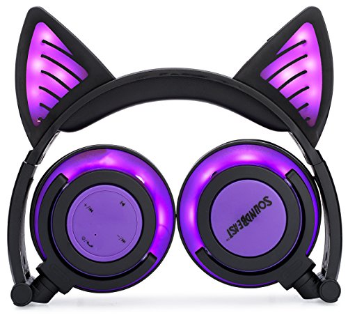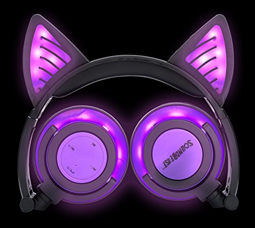 GENUINE SOUNDBEAST Wireless Bluetooth Cat Ear Headphones with Glowing Purple Lights
