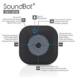 SoundBot® SB518FM FM RADIO Water Resistant Bluetooth Wireless Shower Speaker Hands-Free Portable Speakerphone w/ Smart One Touch Auto-Scan, 6Hrs Music Streaming, Built-in Mic, Detachable Suction Cup
