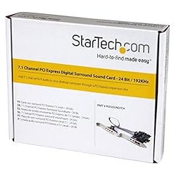 Add 7.1 channel hi-fi audio to your desktop computer through a PCI Express expansion slot – With this 7.1-channel PCIe sound card, you can create a high-quality home theatre sound system. It offers SPDIF input and output ports which deliver crystal-clear digital optical audio, for the ultimate listening experience. Versatile performance The versatile sound card can be used with a variety of audio devices. And with SPDIF digital optical or 3.5mm analog output, you don’t need to worry about the connection types on your devices. You can output digital audio to your optical receiver or DAC, or analog audio to your sound system. With up to 24-bit and 192KHz playback and recording, this 7.1 surround sound adapter card delivers high-definition audio for superb sound quality. Simple installation Unlike typical sound cards, this card is designed to fit in low-profile computers, making it ideal for home theatre personal computers (HTPC). It spans the multiple ports across a main card plus an innovative separate header bracket. The card is configured with standard profile brackets and includes low-profile (half-height) brackets. The 7.1 channel surround sound card is easy to install. It’s perfect for anyone looking for a simple solution to upgrade their listening experience, such as music enthusiasts or mixing professionals. Multiple input options For added scalability, you can quickly connect a microphone or other recording devices to your computer through two 3.5mm stereo or SPDIF digital audio input jacks. The PEXSOUND7CH is backed by a StarTech.com 2-year warranty and free lifetime technical support.