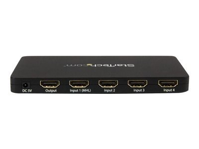The 4-port switch also features MHL support on HDMI input port 1, enabling video output video from MHL-enabled mobile devices such as Samsung Galaxy tablets and smartphones.