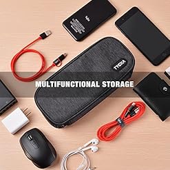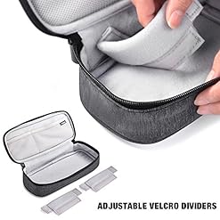 Practical space: Size: 9.6″L x 4.3″W x 1.9″H; Weight:0.3 lb. This storage bag is smart design to storage your cables, USB drive, SD Cards, charger, mouse, earphone and other accessories. It is practical with two adjustable velcro dividers to adjust the storage space according to your needs.