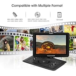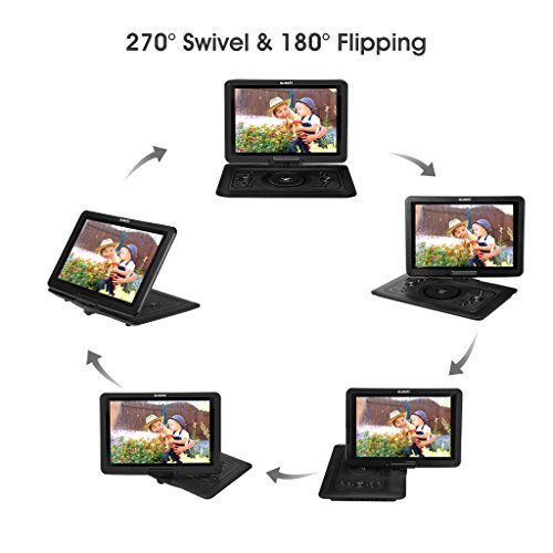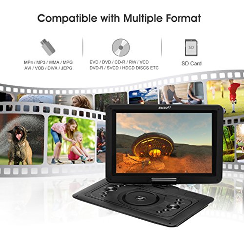 SUAOKI’s DVD portable player features a convenient folding display monitor and its screen can swivel to 270°, flip to 180° as you wish to have. It comes with a free headrest mount holder so that it may be easily swiveled and attached to the car headrest when you are on road trips. The device supports both USB and SD card, You’ll take your whole favorites in a memory card or U-disk and view them at all time and places.