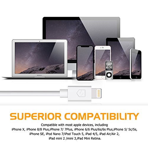 Super Compatibility:Compatibility with all Lighting devices including iPhone X, 8, 8Plus,7,7Plus, SE, 6SPlus, 6Plus, 6S, 6, 5s, 5c, 5, iPad Air mini, iPad 4, iPod 5, iPod 7.