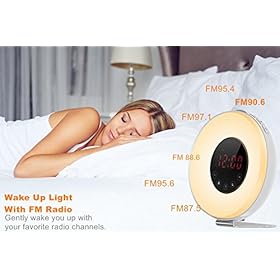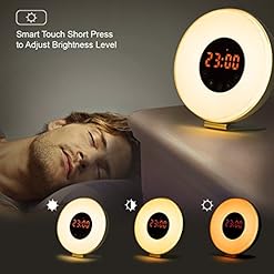 2017 Best Sunlight/Sunrise/Sunset Simulation Alarm Clock: The wake up light will be on from 1% of the brightness to 100% at set time to bring you out of deep sleep gently to welcome a refreshed day; And Sunset function will guide you to natural, restful sleep.