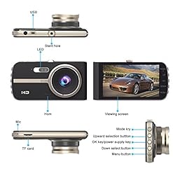 ★DUAL CHANNEL : 4.0″ FULL HD 1080P 170 degree front camera + VGA 120 degree rear camera, obtain full lane coverage, shows more things and can switch among back lens/front lens/both front and back lens display. When reversing, the rear camera is turned on automatically, and the camera will show the reversing image to assist the user!