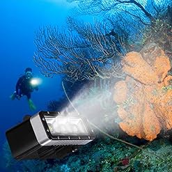 WIDE-ANGLE 300Lumen Max. (5500K-6000K) by 3 LEDs.This is THE underwater light to shop for in case you are in search of aunderwater light that does not get tangled, is easy for different surroundings use, It isn’t just a bright dive LED lights, and it’s also a large capacity mobile power, You’ll also give your camera, mobile phone charge. Will bring infinite convenience to your life.