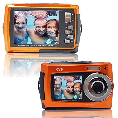 The SVP Aqua 5800 Water-resistant Digital Camera includes a dual color display with 4x digital zoom. The 1.8 inch front TFT color display is large enough to will let you see yourself within the shot before taking the image. 2.7 inch rear LCD display provides easy viewing of the photos. This is a 18 Megapixel camera with a 8.5mm lens. Easy to make use of and is suitable for any travel! It also does not stop you from capturing the easiest moments underwater! The camera supports as much as 32GB of Micro SD card and is compatible with Win XP(SP3), Vista (32/64), Win 7(32, 64) and Mac OS x 10.6.8 or above.