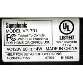 Symphonic VR-701 Video Cassette Recorder Player VCR w/ 4 Head Hi Fi Stereo