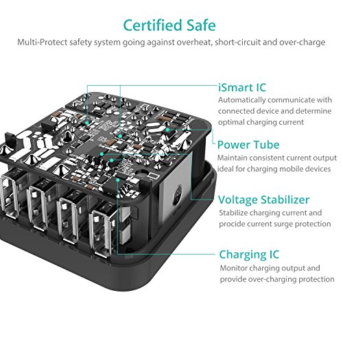 Certified Safe: Approved for UL-FCC-CE certification. Multi-Protect Safety System and the thermal material design keep the charger going against overheat, short-circuit and over-charge.