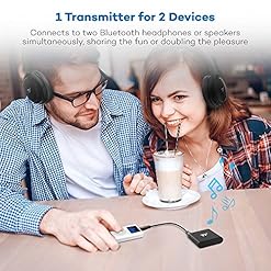 1 Transmitter for 2 Devices: Connects to two Bluetooth headphones, speakers, or even soundbars simultaneously, sharing the fun or doubling the pleasure. Note: aptX Low Latency does NOT support Dual Pair mode.