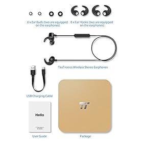 Ergonomic Design for Sport Tired of those headphones that come loose At the same time as exercising? The TaoTronics Sports Earphones come with 3 pairs of interchangeable, in a different way-sized earbuds and ear hooks so you’ll be able to find the snuggest, most comfortable fit. The IPX5 isolation protects them against sweat and water splashing when working out. aptX for Superior Hi-Fi Sound Ever heard that Bluetooth audio transmission suffers from a quality loss when compared to the older CD players? At the same time as this is true, the TaoTronics Wireless Headphones include an aptX codec that transmits CD-like sound quality At the same time as freeing you of cables. Protected Magnetic Design At the same time as bringing the headphones’ carrying case with you isn’t at all times convenient, tangling the earphones inside a bag or pocket is proven to inevitably damage the cord. TaoTronics has integrated two discreet magnets in the earbuds so you’ll be able to wear them like a necklace and keep away from losing or breaking them. More Stable Connectivity & Signal Gone is the time when connecting via Bluetooth came with inevitable connection losses and sound distortion. The Bluetooth 4.1 technology provides up to 7 hours of playback and 175 hours of standby At the same time as ensuring a stable, uninterrupted connectivity. The in-unit ceramic antenna further boosts the signal for crisp hands-free calls. What’s In the Box: 1 x TaoTronics Bluetooth 4.1 Headphones (Model: TT-BH16) 1 x USB Charging Cable 6 x Earbuds (2 equipped on the headphones) 6 x Ear Hooks (2 equipped on the headphones) 1 x User Guide