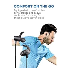 Enhanced Comfort & Wearability: Interchangeable soft earbuds and ear hooks provide a comfortable, snug fit; IPX5 splash proof rating makes it relatively a pair of sport headphones for you