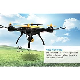 AUTO HOVERING – The advanced altitude holding technology allows the quadcopter drone to suspend in the air even whilst you let go of the transmitter controls.
