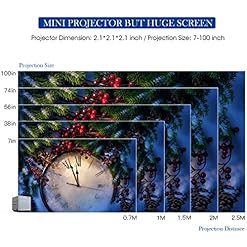 ADJUSTABLE PROJECTION SIZE: Despite its miniature size, this 2.1-inch Pocket Pico Projector is capable of bringing 7-100 inches projection screen with a projection distance of 0.18-2.5m. For optimum viewing, we recommend a projection distance of about 1.5m~2m.