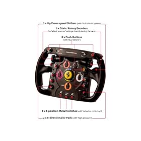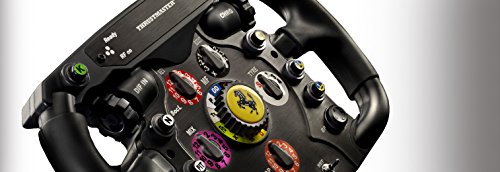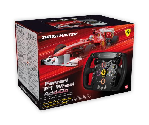 The Thrustmaster Ferrari F1 Wheel Add On is a detachable racing wheel compatible with both the T500 RS (PS3 & PC) and TX Wheel (Xbox One), both sold one after the other. This can be a full-size replica of the Formula 1 Ferrari 2011 racing wheel, under official license by Ferrari. There are two to be had game modes: 1.) “Normal” mode, PC, PS3 and Xbox One compatible (offering 13 action buttons and 3 D-pads); and 2.) “Advanced” mode, PC compatible (offering 25 action buttons and 1 D-pad). Please note that a T500 RS firmware update (to be had from Thrustmaster’s website online) is needed to operate the F1 Ferrari racing wheel.