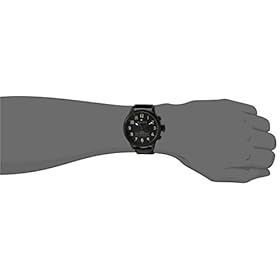 Round black ion-plated watch featuring tonal dial, oversized crown, placed Arabic numerals, iPhone and Android-syncing notification window, and raised logos