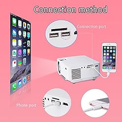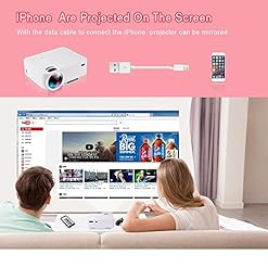 EASY CONNECTING TO IPHONE/IPAD: The use of Charging Cable to connect your iphone/ ipad to Touyinger X5 Mini Multimedia LED HD Video Projector, No Need Wireless or HDMI Adapter. More Simple and Stable, From iPhone or iPad Small Screen to Touyinger HD Video Projector Big Screen.