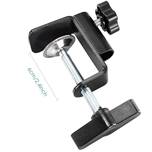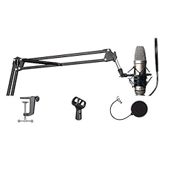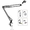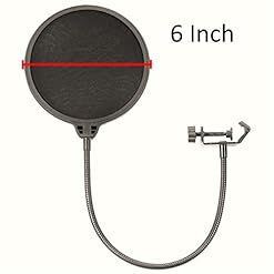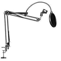 The adjustable black scissor arm stand is made of high quality steel frame, plastic mic clip and wind pop filter mask shield (included)