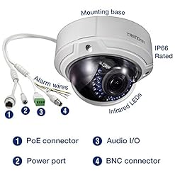 TRENDnet Indoor/Outdoor 2MP 1080p Varifocal PoE IR Dome Network Camera, IP66 Rated Housing, Adjustable Lens, Digital WDR, IK10 Vandal Resistant, ONVIF, IPv6, TV-IP341PI