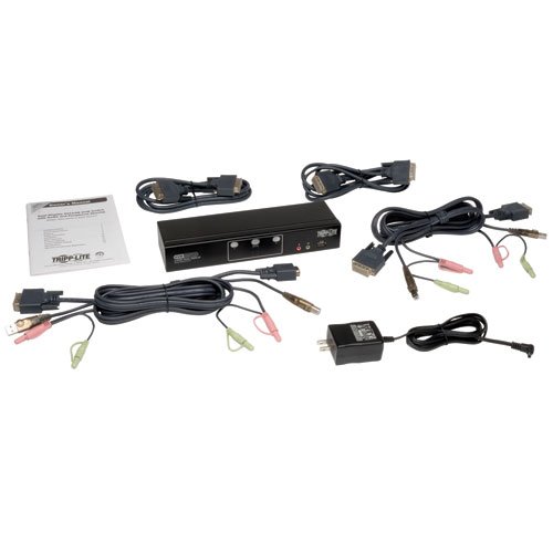 2-Port Dual Display DVI KVM switch with Audio and USB 2.0 Hub, Cables included