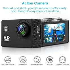 FULL 1080P ACTION CAMERA: Capture your most amazing action moments in full 1080P with TUSAZU’s waterproof action camera. The CMOS sensor and 140-degree wide-angle lens let you capture it all in stunning HD. 1.5-inch HD LCD display, 1080P(30fps), 720P(60fps) video and 12 megapixel pictures, F2.0 aperture.