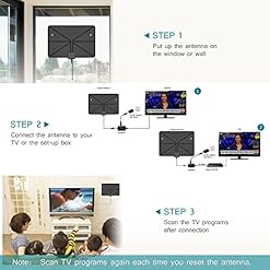 EASY SET UP – Fast and easy set up with 3 steps.( Unwrap, Plug it and Scan channels) . Paper-thin design makes free digital antenna easy to lay flat on table, hide it in the back of the TV, or place it high on window (highly recommended). It will pull in hundreds of crystal clear digital & HD shows.