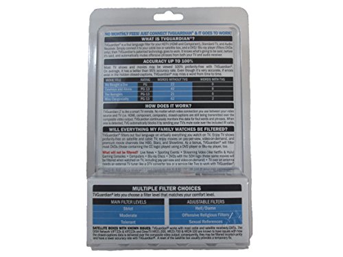 The Details: The TVGuardian technology is a very unique and revolutionary product that uses the closed-captioning to detect and mute profanity. This technology has some limitations. The TVGuardian’s input is a tuner. The commonest tuners are Cable Boxes and Satellite Receivers. The DVD movie or TV show will have to have concurrent closed-captioning. DVDs distributed by Universal Studios and a few movies distributed by Fox will not work with the TVGuardian because they don’t use closed captioning with their DVD’s. VHS videos from Universal Studios and Fox WILL work with the TVGuardian. The TV Guardian detects profanity by reading the closed-captioning signal. Once in a while, on account of errors in the closed-captioning signal, bad words may slip through. The TVGuardian will not work with streaming internet content from products and services like Netflix or Hulu.