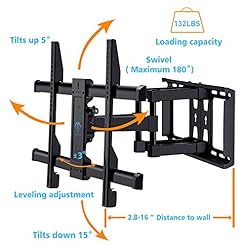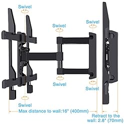 SAVES SPACE IN YOUR HOME – A television mount with dual articulating arms that retracts 2.8″ to the wall in home position and extends up to a 16″ from the wall. Our mount will save you space at the same time as giving your home a nice, neat appearance