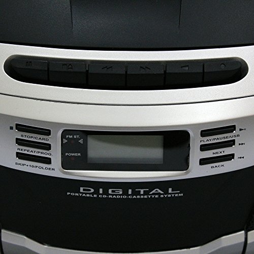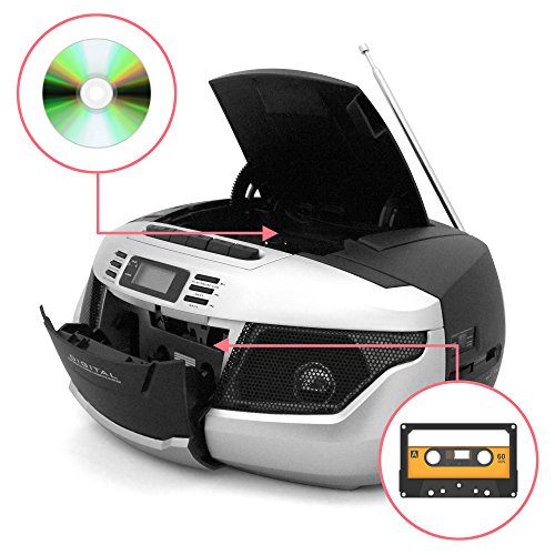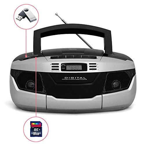 Tyler MP3/CD Boombox Player TAU103-SL with Tape Cassette Player/Recorder, USB/SD Card Reader, Headphone Jack Line-in, Portable Sport Stereo Mega Bass Reflex Stereo Sound System | Silver |